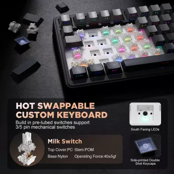 75% RGB Mechanical Gaming Keyboard with Knob - Hot Swappable, Wired